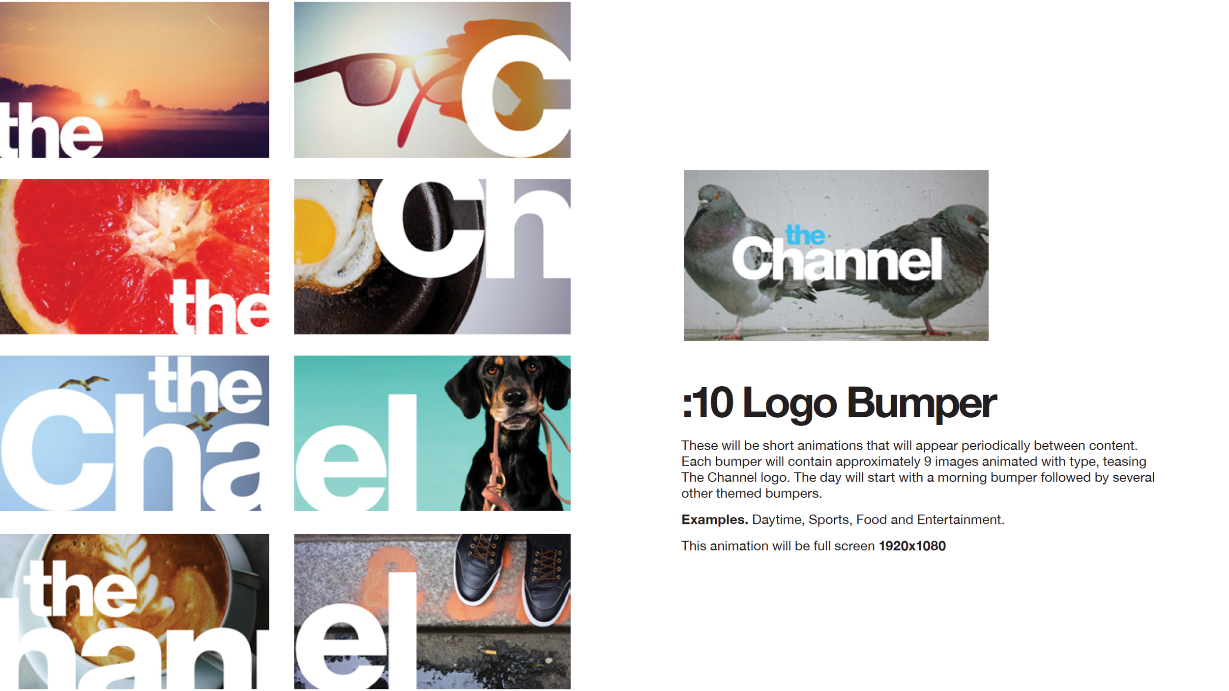 I used clips and photography from our properties as part of The Channel rebrand. The cropped photography used for the bumper kept The Channel from feeling overly corporate.