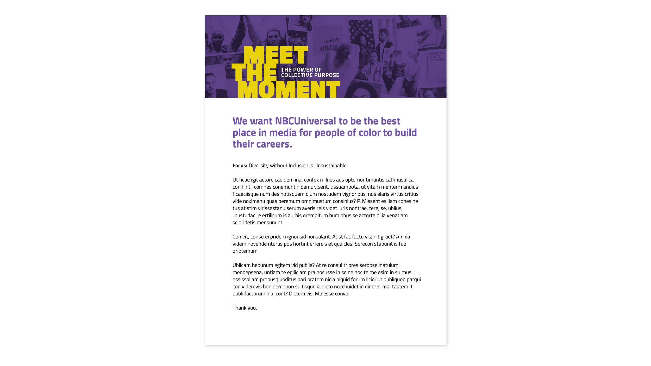 The goal was to empower and inspire employees while kickstarting initiatives that sparked change in the industry. The main challenge was creating a brand that visually kept the serious tone and respected the sensitivity of the subject, while offering hope and promise.
